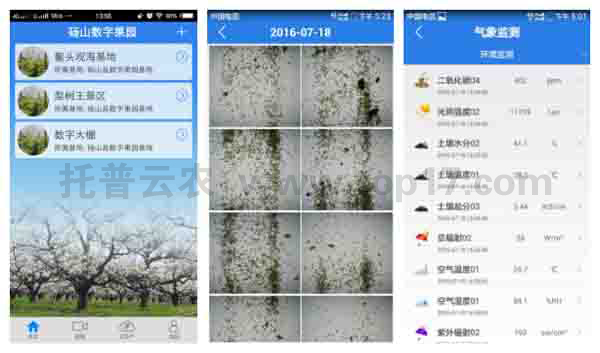 砀山“数字果园”的农业物联网平台正是由浙江托普云农科技股份有限公司(以下简称“托普云农”)负责搭建的。托普云农综合管理云平台涵盖“数字果园”生长环境数据采集系统、视频远程可视化系统、多功能预警系统、农产品质量安全追溯系统、中央指挥系统、手机APP等。
