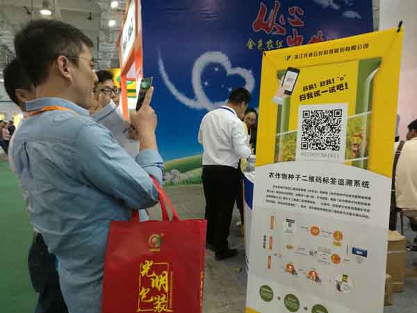 其中根据9月18日农业部办公厅印发的《农作物种子标签二维码编码规则》要求,推出的农作物种子二维码标签追溯系统,吸引了诸多专业客户驻足。系统分为:包装印刷环节、生产环节、流通环节、追溯环节等四个环节。操作灵活方便,可自动生产唯一性二维码,品种和批次独立管理,又相互关联。消费者,执法者,经营者可通过手机二维码获得种子的品种信息、生产经营者信息、品识别码、追溯网址等内容。许多客户纷纷扫码体验,对系统的及时性和便捷性赞不绝口,部分客户同公司营销总监陈丽婷就系统的购买和使用问题进行交流,对托普云农在种业领域做出的成果给予肯定,希望托普云农可以推出更多符合市场需求的产品。