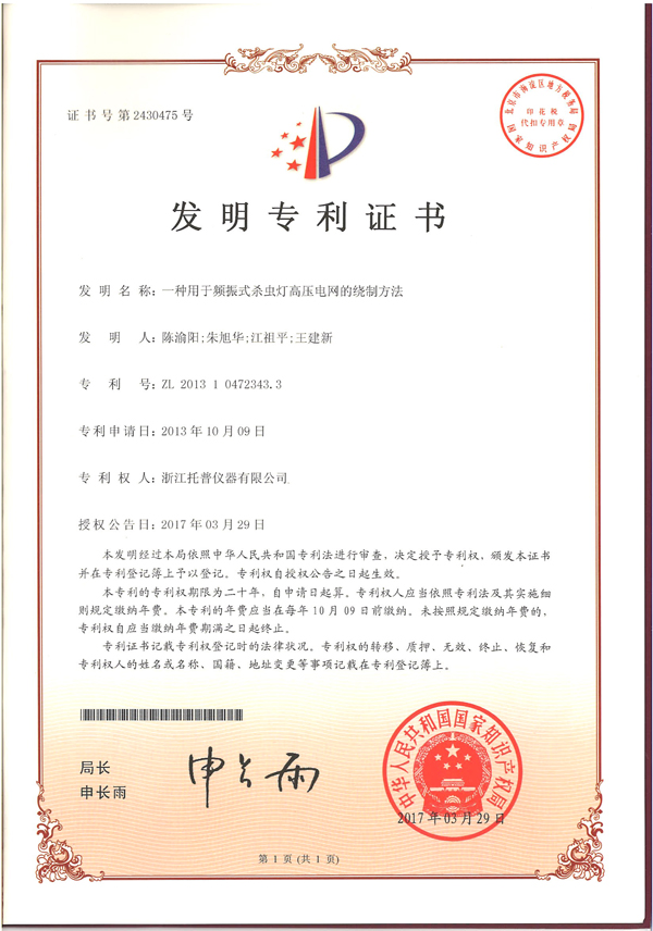 Ïà½ÏÓÚ´«Í³µÄɱ³æµÆÈÆÖÆ·½·¨£¬¡°Ò»ÖÖÓÃÓÚÆµÕñʽɱ³æµÆ¸ßѹµçÍøµÄÈÆÖÆ·½·¨¡±ÊÇÒ»ÖÖÓÃרÃÅÉè¼ÆµÄÂÝÐýÈÆÏß»úʵÏÖɱ³æµÆ¸ßѹµçÍøÈÆÏߵķ½·¨¡£¸Ã·¢Ã÷רÀûÓÚ2013Äê10ÔÂ9ÈÕÏò¹ú¼Ò֪ʶ²úȨ¾ÖÉêÇ룬²¢ÓÚ2017Äê3ÔÂ29ÈÕÕýʽµÃµ½ÊÚȨ¡£¾ÝÒµÄÚר¼ÒÆÀ¼Û£¬¸ÃרÀûÓÉÓÚµçÍø¼ä¾àÓÉÂݸËÂݾౣ֤£¬Ê¹µÃÈÆÖÆºóµÄµçÍø¼ä¾à¾ùÔÈÒ»Ö¡£´ËÍâ£¬ÈÆÖÆ·½·¨²Ù×÷·½±ã£¬ÈÆÖÆÐ§ÂʸßÇÒÈÆÏß½ôÖ²»Ò×ËÉÂäÔì³É¶Ì·£¬¾ßÓÐÁ¼ºÃµÄÆÕ¼°ÔËÓüÛÖµ¡£