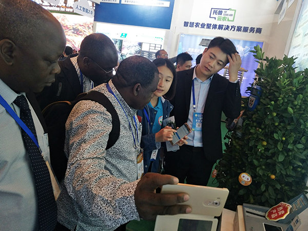 农业信息化是农业现代化的标志,为此海南集中优势积极开展海南特色农产品的电商促销、农产品质量安全追溯以及农业的信息化服务。在海南,瓜果种类资源丰富多样。为提升现场参展人员的农产品质量安全溯源体验,托普云农还将橘树搬进展区。分布在展区的两棵橘子树,更是获得国外友人的好奇与关注。通过手机扫描二维码,便能查看到橘子的光照温度、土壤温湿度等生长环境信息。如此智能化的操作,让国际友人赞叹不已。
