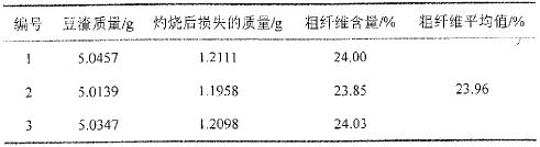 豆渣中粗纤维的测定结果