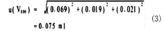 1.3 100mL 消化瓶体积的标准不确定度u(V100)的分析