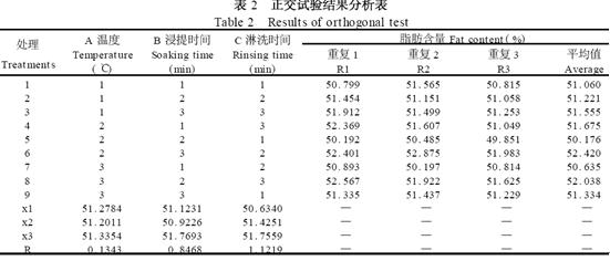 1. 4 ¡¡Õý½»Éè¼ÆÌáÈ¡·½·¨¡¡¡¡¸ù¾ÝÈȽþÌᡪÓÍÖØ·¨²â¶¨ÔÀí,Ñ¡¶¨½þÌáζÈ(A) ¡¢½þÌáʱ¼ä(B) ºÍÁÜϴʱ¼ä(C) ×÷Ϊ¿¼²ìÒòËØ,¸÷Éè3 ¸öˮƽ,Ñ¡ÓÃL9 (34 ) Õý½»±í½øÐÐÊÔÑé(¼û±í1) ,Èý´ÎÖØ¸´¡£