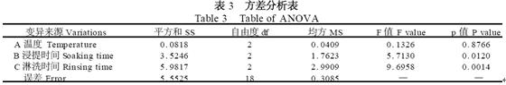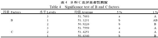 ¶Ô´ÖÖ¬·¾º¬Á¿Êý¾Ý½øÐÐÖ±¹Û·ÖÎö(±í2) ,±È½Ï3¸öÒòËØµÄ¼«²î( R) ,¿É¼ûRC(1 . 1219) > RB