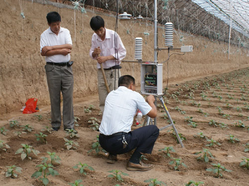 8月22日,内蒙古自治区赤峰市松山区气象局在全家梁万亩无公害蔬菜园区新安装了9要素农田小气候自动监测仪,该仪器观测项目包括:0㎝、10㎝、40㎝地温,1米、1.5米的温度、湿度,以及二氧化碳、总辐射、光和有效辐射。通过此项工作的开展,气象服务松山设施农业又增添了新内容。