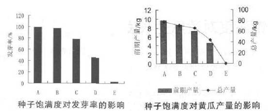 从上图不难看出,种子的发芽率以及黄瓜的产量与种子的饱满度有着很大的关系,在种子千粒重为18g以下时,种子的发芽率仅为2.3%,但是它的产量却是为0。随着种子饱满度的增加,种子的发芽率以及最终产量的产量均是在增加。
