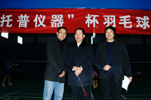 托普仪器总经理陈渝阳先生出席开幕式并致词,与农业部机关羽毛球俱乐部一队、二队、外经中心羽毛球俱乐部队以及全国农技推广中心羽毛球俱乐部队等四支球队近80人共度2011年元旦佳节的最后一天。