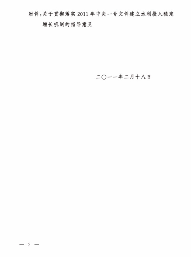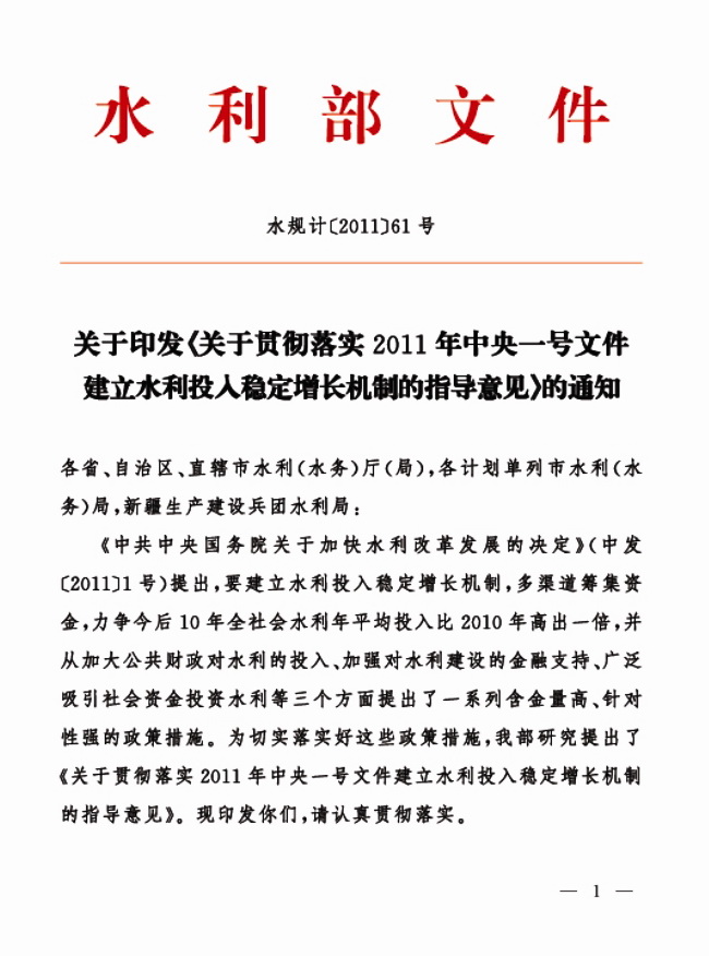 2011年中央一号文件建立水利投入稳定增长机制主要内容