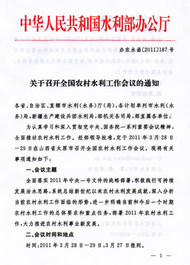 关于召开全国农村水利工作会议的通知