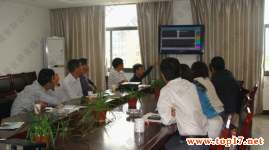 公司副总朱旭华先生首先对公司的整体发展进行了简短的介绍,使郑站长一行对托普仪器有了进一步的了解。随后详细介绍了我公司致力于土壤养分、土壤墒情等土壤检测、监测仪器(详见:m.polyscience.com.cn)的研发现状与已取得的成果。当朱经理提及公司固定式无线农业气象综合监测站的时候,引起了郑站长的浓厚兴趣。在讲解过程中,郑站长不时提问、反复确认系统功能,与会研发部经理及相关技术人员进行现场演示和详细讲解,详细解答了土肥站各领导的问题。