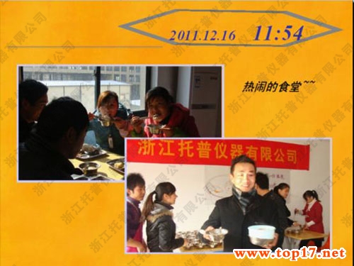前期托普仪器为提升公司员工的工作能力,丰富员工的业余生活,特邀请浙江大学管理学院博士后、浙江大学人文学院博士—吴恩峰老师为全体托普成员,每两周进行一次管理培训,为了更好的展现托普人员的积极性、展现托普人员的动手能力、合作能力、协作能力以及领导能力,并能够展示托普风采的一面在培训过程中给大家安排一些任务或搞一些活动让员工从中受到启发。参加培训的员工共分为三个队,航组队、今胜队、火箭队,在老师没有具体安排活动的情况下,为迎接圣诞和新年,今胜队在大家都不知晓的情况下为大家偷偷的准备了新年爱心贺卡,并亲自送到每个人手中。另外两个队也不甘示弱,他们为了给大家带来意外的惊喜,特秘密安排在2011年12月16日中午在公司餐厅为员工送上爱心水饺。