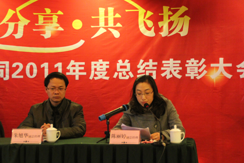 公司总经理陈渝阳先生在讲话中指出,2011年是公司抓住机遇、开拓进取,上下团结一致,克服各种困难和市场竞争的压力,实现公司市场、产品、规模、效益同等快速增长的一年,基本完成公司年初预定的各项经济目标任务。大部分历史指标实现历史最高水平。陈总对营销方面、研发生产方面、人事行政等各方面工作进行总结评价,肯定了2011全年公司上下一心取得的成绩,但也提出了工作中的不足,我们要继续发扬开拓进取、用于拼搏的精神,来迎接2012年的挑战。随后行政副总就2011年度行政、人事工作进行了进一步的、较为详细的总结。强调出明年的工作重点仍然是各项制度的制订与完善,并要求公司上下坚决执行。营销副总则对公司全年的宣传推广及销售情况进行了汇报。陈总表示,销售业绩达到预期目标,并提出了本年度公司整体营销上存在的种种问题。12年的销售任务仍然很重,但相信我们的营销团队可以圆满的完成。生产副总则对公司的研发、技术、生产、质检等部门工作进行了总结,主要针对各部门存在的一些问题提出了解决方案,并提出2012年的工作重点是不断完善现有产品的品质控制及加强各个部门的团队建设。
