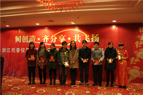 浙江托普仪器有限公司2011年年度总结表彰大会于2012年1月15日在铭泰大酒店七楼会议室圆满召开。此次会议的主题是“同创造 齐分享 共飞扬”,托普上下110余人齐聚一堂,共同回顾2011年托普仪器的点点滴滴,并对2012年各项工作进行展望。
