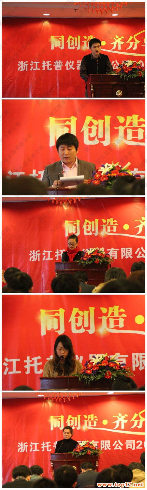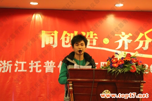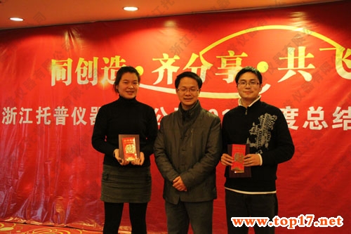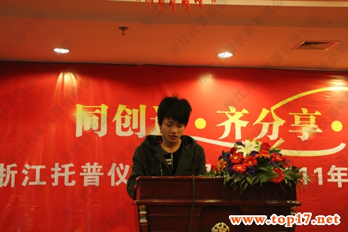 浙江托普仪器有限公司2011年年度总结表彰大会于2012年1月15日在铭泰大酒店七楼会议室隆重举行。托普仪器全体员工共110余人齐聚一堂参加了此次会议。本次会议主要目的是共同回顾2011年托普仪器的点点滴滴,对2011年公司涌现出的先进个人进行表彰、鼓励,并对2012年的工作规划及展望。