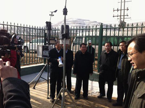 ͼΪ£º¸÷´óýÌåÅãͬÓë»áÁìµ¼¼°´ú±í²Î¹Û¶¨Î÷Çø¹ú¼Ò¼¶Å©ÌïÍÁÈÀÉÊÇéÓ뺵Çé¼ì²âÇø°²×°µÄÎÞÏß¶àµãÍÁÈÀÉÊÇé¼à²âϵͳ