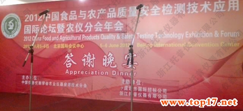 最后,浙江托普仪器有限公司与中国远东国际招标公司协同赞助了“中国食品与农产品质量安全检测技术应用国际论坛农仪分会年会答谢晚宴,此次展览会画上了圆满的句号。