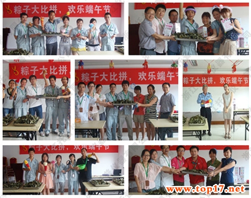 第二个环节是包粽子比赛。比赛尚未开始,大家看到摆在桌面上的糯米、粽叶便兴奋不已,摩拳擦掌,恨不得马上动手开始包起来。在宣布完比赛规则后,主持人一声令下,比赛热火朝天的开始了。只见会包粽子的人熟练的拿起粽叶折好,放入糯米、肉,迅速的用绳子包扎好,一个有棱有角的粽子便包好了;再看不会包的人,在旁虚心学习,慢慢练习,虽然速度不比会包粽子的人快,却也能包出来个粽子样儿来;更有些不会包粽子的人却又想一心赢得奖品的人,将馅料胡乱放入粽叶包扎起来,包出来的粽子的有三角形的,长形的和一些形状怪异的样子,让人看了忍俊不禁。比赛结束后,由陈丽婷经理担任平评委,从粽子的美观、质量、数量等评比出来一等奖一名、二等奖两名、三等奖三名,并由朱旭华经理,陈丽婷经理、张贵友经理分别给优胜者发放奖品。