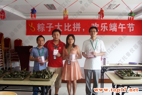 2012年6月9日,为喜迎即将到来的端午佳节,活跃公司文化氛围,体现浙江托普仪器公司工会对员工的关爱,围绕“粽子大比拼,欢乐端午节”这一主题,工会举办了包粽子比赛等一系列活动,并为大家准备了精美的礼品。活动现场用香包进行点缀,不仅漂亮,更是香气宜人,增加了节日气氛。公司领导朱旭华经理、张贵友经理、陈丽婷经理也前来参加此次活动。