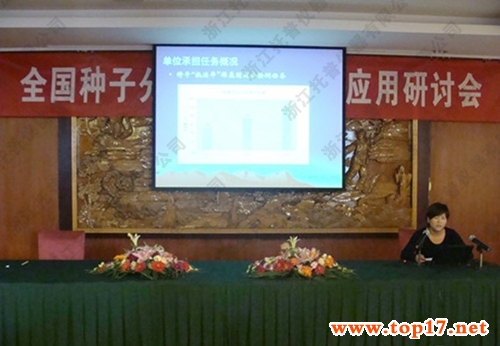 ¡¡¡¡2012Äê10ÔÂ16-17ÈÕ£¬È«¹úÖÖ×Ó·Ö×Ó¼ì²â¼¼Êõ¼°Ó¦ÓÃÑÐÌÖ»áÔÚº¼ÖÝÕÙ¿ª¡£»áÒéÓÉÈ«¹úÅ©¼¼ÖÐÐÄÖ§¾ÞÕñ´¦³¤Ö÷³Ö¡£²Î¼Ó´Ë´Î»áÒéµÄÓÐÈ«¹úÅ©¼¼ÖÐÐĵ˹âÁª¸±Ö÷ÈΡ¢È«¹úÅ©¼¼ÖÐÐÄÊ×ϯר¼ÒÁºÖ¾½Üר¼Ò¡¢Å©Òµ²¿ÖÖ×Ó¹ÜÀí¾ÖÕŶ¬Ïþ¸±´¦³¤¡¢Õã½Ê¡ÖÖ×Ó×ÜÕ¾ÍõºÆÁ¼Õ¾³¤µÈÁìµ¼ÒÔ¼°À´×ÔÈ«¹úÖÖ×ÓÖÊÁ¿¼à¶½¼ìÑéÕ¾¸±Õ¾³¤¼°¿Æ³¤£¬¼Æ60ÓàÈË¡£
