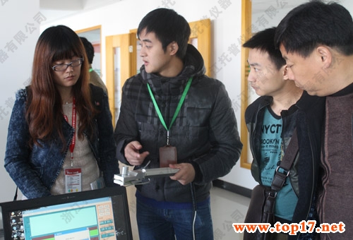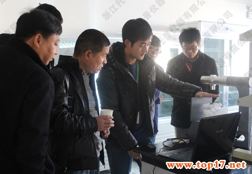 图为:托普仪器技术人员为经销商讲解产品性能及操作方法