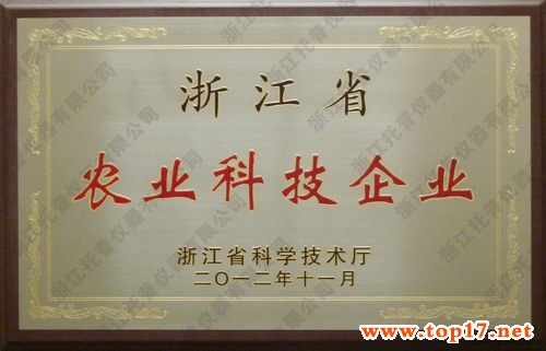 祝贺托普仪器被认定为2012年浙江省农业科技企业