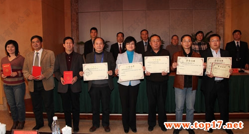 图为:为张文君等58位同志为中国农业技术推广协会特聘专家并颁发专家代接受聘书