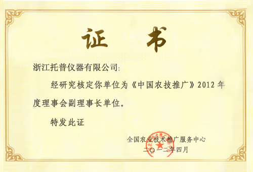 托普仪器连续两年被认定为理事长单位,积极配合中国农技推广协会的工作,大力推进基层农技推广体系改革与建设,全力服务中国特色农业现代化建设。