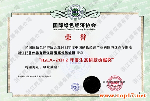 ¡¡¡¡Õã½­ÍÐÆÕÒÇÆ÷ÓÐÏÞ¹«Ë¾³ÂÓåÑô×ܾ­ÀíÓ¦Ñû³öϯ´Ë´Î»áÒ飬²¢ÈÙ»ñÓɹú¼ÊÂÌÉ«¾­¼ÃЭ»á°ä·¢µÄ¡°IGEA¡ª2012Äê¶ÈÉú̬¿Æ¼¼¹±Ï×½±¡±£¬´Ë½±ÏîÊǾ­¹ú¼ÊÂÌÉ«¾­¼ÃЭ»á¶Ô2012Äê¶ÈÖйúÂÌÉ«¾­¼Ã²úҵʱ¼äµÄÅ̵ãÓëÍÆÑ¡¶ø»ñµÃ¡£