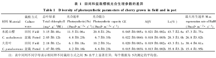¡¡¡¡Óɱí1¿É¿´³ö£¬ÌïÎÊÔÔÅàµÄ±¾ÏªÉ½Ó£¼°´óÇàÒ¶µÄPn¾ùÏÔÖø¸ßÓÚÆäÅèÔÔÖ²Ö꣬·Ö±ðÊÇÅèÔÔÖ²ÖêµÄ£¬(2Ìø2.40±¶ºÍ1.45±¶¡£Ò¶ÂÌËØº¬Á¿Ò²±íÏÖ³öÓëPnÏàËÆµÄ¹æÂÉ(2005Äê6Ô³õ²â¶¨±¾ÏªÉ½Ó£¼°´óÇàÒ¶µÄÒ¶ÂÌËØº¬Á¿·Ö±ðΪͬ×÷ÕßǰÆÚ2006)Ñо¿½á¹ûÏà±È(3.24Ê¿0.18)¡¢EVI),ÌïÎʱ¾ÏªÉ½Ó£Ò¶ÂÌËØº¬Á¿Ã»ÓÐÃ÷ÏԵı仯£¬ÌïÎÊ´óÇàÒ¶ÔòϽµÁË249010.22)mg"g-¶øÁ½ÖÖÅèÔÔÖ²ÖêÒ¶ÂÌËØº¬Á¿¾ùϽµÃ÷ÏÔ£¬±íÃ÷ÅèÔÔÓ£ÌÒÉú³¤ºóÆÚÒ¶ÂÌËØ½µ½â½ÏÔ磬Õâ¿ÉÄÜÊǵ¼ÖÂÅèÔÔÖ²Öê¹âºÏÄÜÁ¦Ï½µµÄÔ­ÒòÖ®Ò»¡£´ÓÆø¿×ÏÞÖÆÖµ(Ls)ÉÏ¿´£¬Á½ÖÖÌïÎÊÓ£ÌÒÎÊÎÞÃ÷ÏÔ²îÒ죬µ«¾ùÏÔÖø´óÓÚÆäÏàÓ¦µÄÅèÔÔÖ²Ö꣬»¯Ð§ÂÊ˵Ã÷ÅèÔÔÖ²ÖêPnϽµ²»ÊÇÆø¿×ÏÞÖÆ¶øÊÇÒ¶ÈâµÄ¹âºÏÄÜÁ¦²îÒìÔì³ÉµÄ£¬ÒòΪÌïÎÊÔÔÅàÖ²ÖêµÄËó(CE),RuBP×î´óÔÙÉúËÙÂʺͱí¹ÛÁ¿ÁËЧÂÊ(AQY)¾ùÏÔÖø¸ßÓÚÅèÔÔÖ²Öê¡£