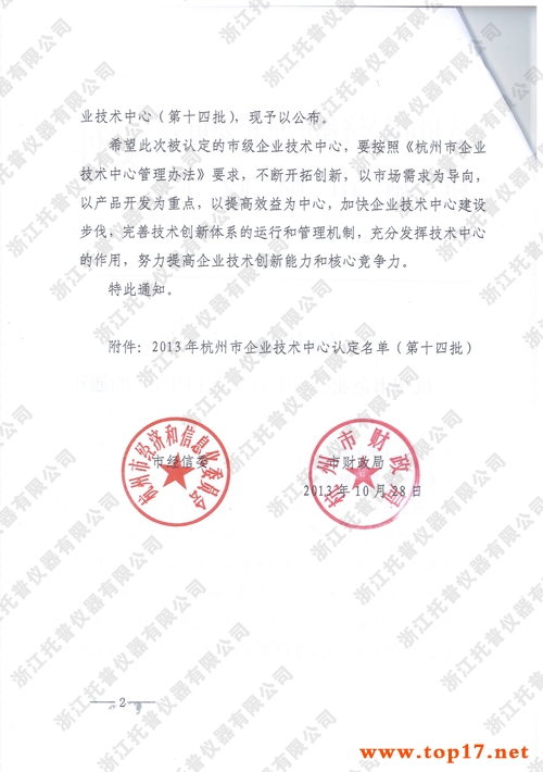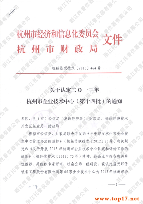 ÍÐÆÕÒÇÆ÷±»È϶¨Îªº¼ÖÝÊÐÆóÒµ¼¼ÊõÖÐÐÄ