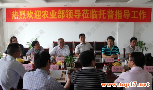 图为:陈部长调研组一行、浙江省农业厅领导及托普仪器领导共同合影
