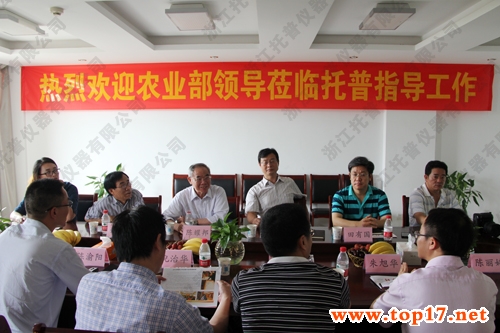 2014年7月5日,农业部原部长、中国农技推广协会名誉会长陈耀邦一行在浙江省农业厅相关领导的陪同下,莅临托普仪器开展调研活动。在详细了解托普仪器发展现状、未来规划之后,调研组与托普仪器管理高层召开了座谈会。