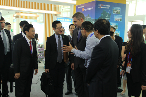 图为:屈冬玉副部长和斯洛文尼亚副总理一行莅临托普展区