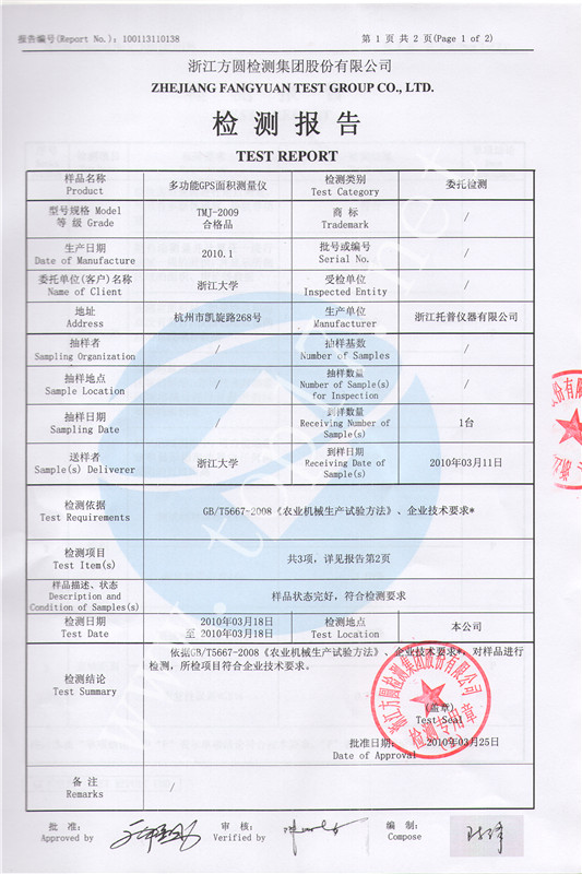 面积测量精度:1-10亩 ±2.5%;10亩以上 ±1%