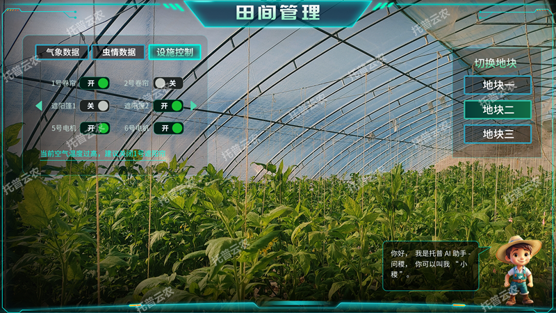 6.ÎïÁª¿ØÖÆ¡¢ÖÇÄܼà²â£º¿É¸ù¾Ýµ±Ç°×÷ÎïÖÖÖ²Çé¿ö¡¢³¤ÊƼ°ÉúÓýÆÚ½×¶Î£¬µ±É豸»·¾³»òÍÁÈÀµÈÐÅÏ¢³¬³ö×÷ÎﵱǰÊÊÒËÉú³¤µÄÎÂʪ¶ÈʱÄÜÆðµ½¼à²âÔ¤¾¯µÄ×÷Óã¬Í¨¹ýARÑÛ¾µ¶Ôµç´Å·§¡¢Ë®±Ã¡¢¾íÁ±¡¢¹à¸È¡¢ÅÅ·çÉȵÈÉèÊ©ÖÕ¶ËÉ豸½øÐÐÊÖ¶¯ÓïÒô¿ØÖÆ£¬±£Ö¤×÷ÎïÕý³£Éú³¤¡£