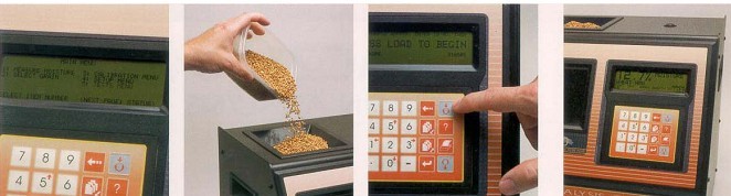 1.待测谷物倒入漏斗; 2.按进样键,自动进样 ; 3.仪器测试并显示结果;