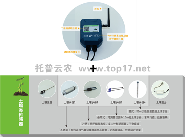 数据采集是实现信息化管理、智能化控制的基础。由于农业行业的特殊性,传感器不仅布控于室内,还会因为生产需要布控于田间、野外,深入土壤或者水中,接受风雨的洗礼和土壤水质的腐蚀。根据现代农业发展对水份监测的需求,研发出多种传感器。