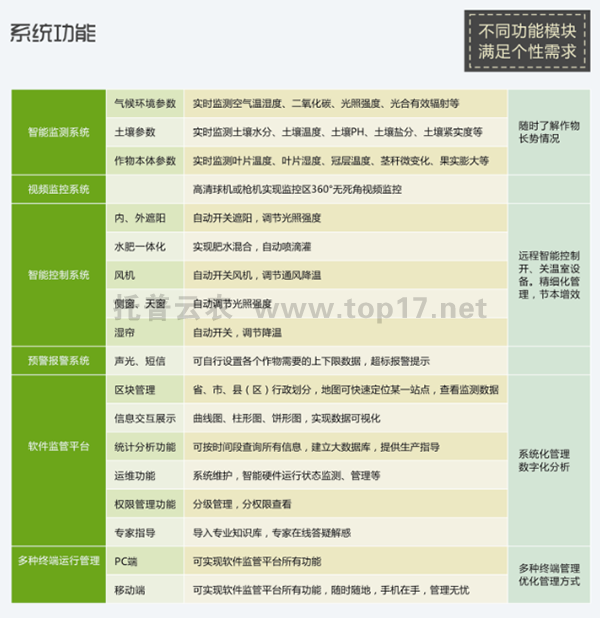 ͨ¹ýÎïÁªÍøÏµÍ³£¬¿ÉÒÔÉ趨ÎÂÊÒÄÚ¸÷ÖÖÉ豸ÔËÐл·¾³Ìõ¼þ£¬µ±»·¾³ÐÅϢδ´ïµ½Ô¤ÏÈÖÆ¶¨µÄÌõ¼þʱ£¬×Ô¶¯Æô¶¯ÎÂÊÒÄÚµÄÏà¹ØÉ豸£¬±ÈÈ磺·ç»ú×Ô¶¯µ÷½Úͨ·ç½µÎ¡¢ÄÚÍâÕÚÑô×Ô¶¯µ÷½Ú¹âÕÕÇ¿¶È¡¢×Ô¶¯ÅçµÎ¹à¡¢×Ô¶¯¼Óʪ³ýʪ¡¢×Ô¶¯Ê©·Ê£¬ÊµÏÖÖÇÄÜ»¯¹ÜÀí£¬½ÚË®£¬Ê¡µç£¬Ê¡È˹¤£¬¸üÊ¡ÐÄ¡£